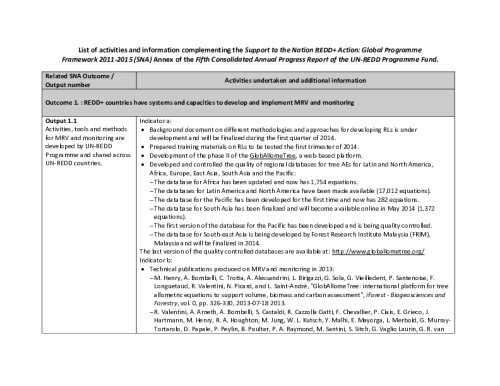 Home Document Library List of Activities and Information Complementing SNA Annex Annual Report 2013-ENG List of activities and information complementing SNA Annex Annual Report 2013-ENG Fri, 04 Jul, 2014 Download the resource Format: application/pdf Size: (0.522 MB) download Filed under: Category Empty Related publications View all Foundation documents 23 May, 2025UN-REDD Programme Developer 23/05/2025 - Document Download English 21 May, 2025UN-REDD Programme Draft UN-REDD 2026-2030 Strategy Download English 21 May, 2025UN-REDD Programme Draft Monitoring and Evaluation Framework UN-REDD 2026-30 Download English