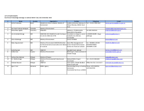 Home Document Library List of Participants Oslo 28Oct13 List of participants Oslo 28Oct13 Thu, 24 Oct, 2013 Download the resource Format: application/pdf Size: (0.088 MB) download Filed under: Category Empty Related publications View all Foundation documents 23 May, 2025UN-REDD Programme Developer 23/05/2025 - Document Download English 21 May, 2025UN-REDD Programme Draft UN-REDD 2026-2030 Strategy Download English 21 May, 2025UN-REDD Programme Draft Monitoring and Evaluation Framework UN-REDD 2026-30 Download English