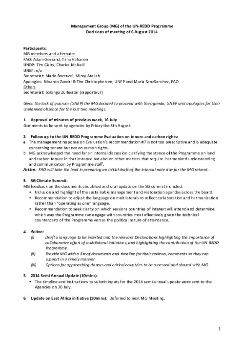 Home Document Library MG Minutes 6 August 2014 MG minutes 6 August 2014 Tue, 11 Nov, 2014 Download the resource Format: application/pdf Size: (0.094 MB) download Filed under: Category Empty Related publications View all Foundation documents 23 May, 2025UN-REDD Programme Developer 23/05/2025 - Document Download English 21 May, 2025UN-REDD Programme Draft UN-REDD 2026-2030 Strategy Download English 21 May, 2025UN-REDD Programme Draft Monitoring and Evaluation Framework UN-REDD 2026-30 Download English