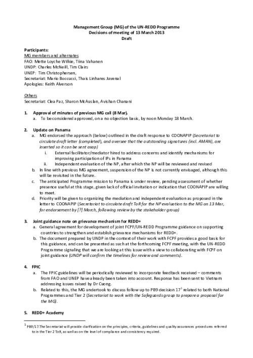 Home Document Library MG_Minutes 13 Mar 2013 MG_Minutes 13 Mar 2013 Tue, 02 Apr, 2013 Download the resource Format: application/pdf Size: (0.42 MB) download Filed under: Category Empty Related publications View all Foundation documents 23 May, 2025UN-REDD Programme Developer 23/05/2025 - Document Download English 21 May, 2025UN-REDD Programme Draft UN-REDD 2026-2030 Strategy Download English 21 May, 2025UN-REDD Programme Draft Monitoring and Evaluation Framework UN-REDD 2026-30 Download English