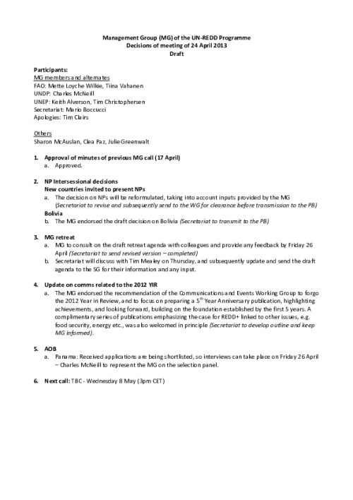 Home Document Library MG_Minutes 24 Apr 2013 MG_Minutes 24 Apr 2013 Wed, 08 May, 2013 Download the resource Format: application/pdf Size: (0.407 MB) download Filed under: Category Empty Related publications View all Foundation documents 23 May, 2025UN-REDD Programme Developer 23/05/2025 - Document Download English 21 May, 2025UN-REDD Programme Draft UN-REDD 2026-2030 Strategy Download English 21 May, 2025UN-REDD Programme Draft Monitoring and Evaluation Framework UN-REDD 2026-30 Download English