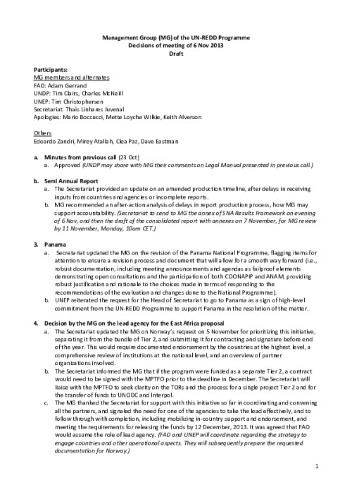 Home Document Library MG_Minutes 6 Nov 2013 MG_Minutes 6 Nov 2013 Thu, 21 Nov, 2013 Download the resource Format: application/pdf Size: (0.345 MB) download Filed under: Category Empty Related publications View all Foundation documents 23 May, 2025UN-REDD Programme Developer 23/05/2025 - Document Download English 21 May, 2025UN-REDD Programme Draft UN-REDD 2026-2030 Strategy Download English 21 May, 2025UN-REDD Programme Draft Monitoring and Evaluation Framework UN-REDD 2026-30 Download English