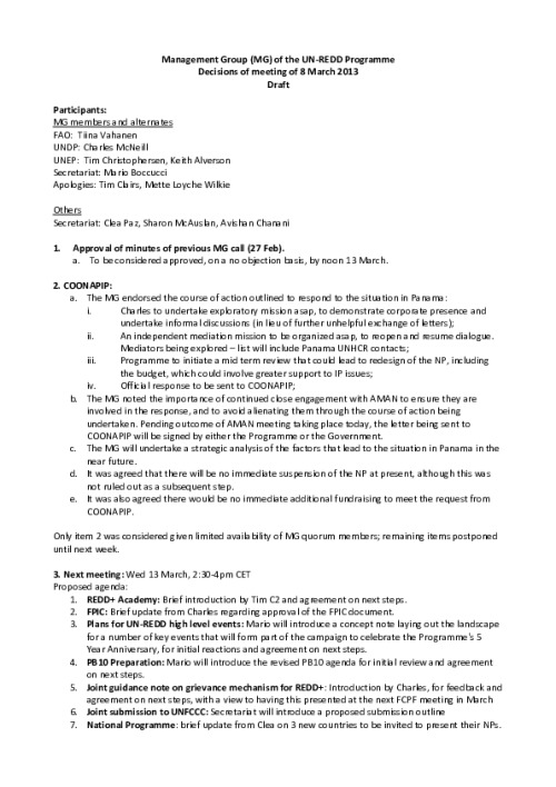 Home Document Library MG_Minutes 8 Mar 2013 MG_Minutes 8 Mar 2013 Tue, 02 Apr, 2013 Download the resource Format: application/pdf Size: (0.259 MB) download Filed under: Category Empty Related publications View all Foundation documents 23 May, 2025UN-REDD Programme Developer 23/05/2025 - Document Download English 21 May, 2025UN-REDD Programme Draft UN-REDD 2026-2030 Strategy Download English 21 May, 2025UN-REDD Programme Draft Monitoring and Evaluation Framework UN-REDD 2026-30 Download English