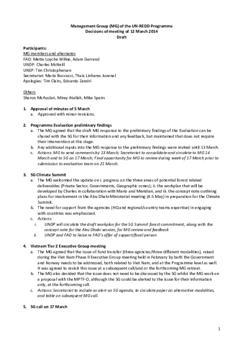 Home Document Library MG_Minutes_12_March_2014 MG_Minutes_12_March_2014 Tue, 25 Mar, 2014 Download the resource Format: application/pdf Size: (0.349 MB) download Filed under: Category Empty Related publications View all Foundation documents 23 May, 2025UN-REDD Programme Developer 23/05/2025 - Document Download English 21 May, 2025UN-REDD Programme Draft UN-REDD 2026-2030 Strategy Download English 21 May, 2025UN-REDD Programme Draft Monitoring and Evaluation Framework UN-REDD 2026-30 Download English