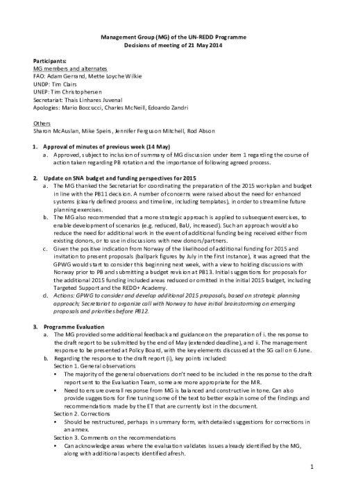 Home Document Library MG_Minutes_21_May_2014 MG_Minutes_21_May_2014 Tue, 11 Nov, 2014 Download the resource Format: application/pdf Size: (0.088 MB) download Filed under: Category Empty Related publications View all Foundation documents 23 May, 2025UN-REDD Programme Developer 23/05/2025 - Document Download English 21 May, 2025UN-REDD Programme Draft UN-REDD 2026-2030 Strategy Download English 21 May, 2025UN-REDD Programme Draft Monitoring and Evaluation Framework UN-REDD 2026-30 Download English