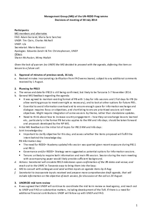Home Document Library MG_minutes_30_July_2014 MG_minutes_30_July_2014 Tue, 11 Nov, 2014 Download the resource Format: application/pdf Size: (0.087 MB) download Filed under: Category Empty Related publications View all Foundation documents 23 May, 2025UN-REDD Programme Developer 23/05/2025 - Document Download English 21 May, 2025UN-REDD Programme Draft UN-REDD 2026-2030 Strategy Download English 21 May, 2025UN-REDD Programme Draft Monitoring and Evaluation Framework UN-REDD 2026-30 Download English