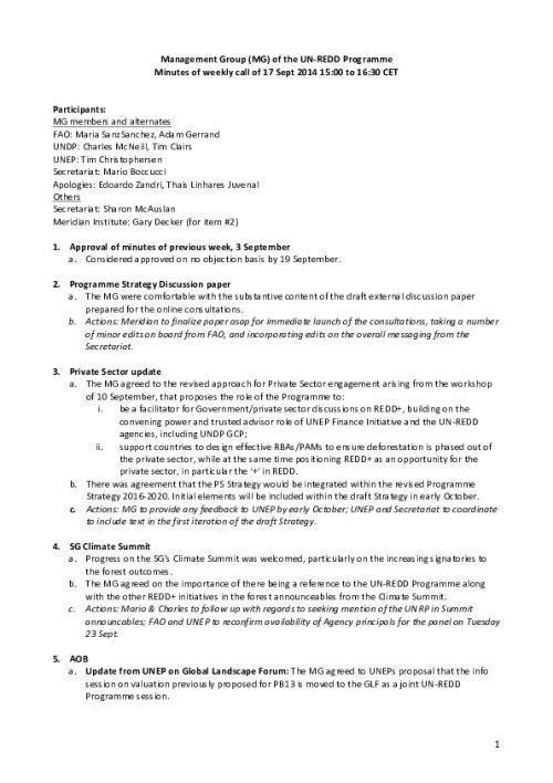 Home Document Library Minutes MG Call 17 Sept 2014 Minutes MG call 17 Sept 2014 Tue, 11 Nov, 2014 Download the resource Format: application/pdf Size: (0.079 MB) download Filed under: Category Empty Related publications View all Foundation documents 23 May, 2025UN-REDD Programme Developer 23/05/2025 - Document Download English 21 May, 2025UN-REDD Programme Draft UN-REDD 2026-2030 Strategy Download English 21 May, 2025UN-REDD Programme Draft Monitoring and Evaluation Framework UN-REDD 2026-30 Download English