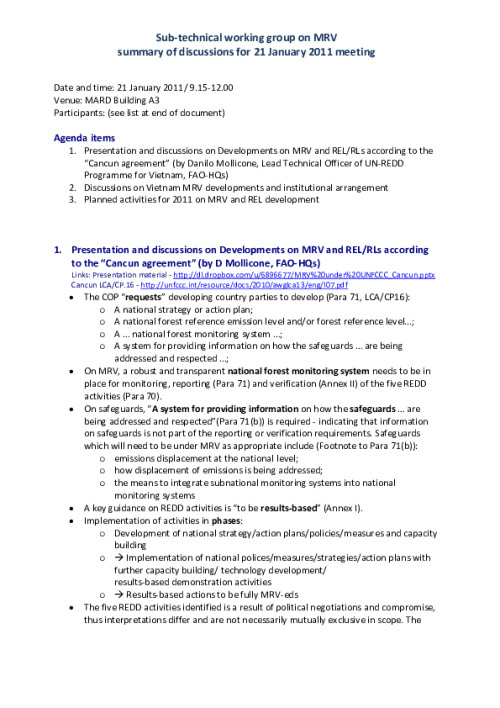 Home Document Library Minutes MRV Sub-technical Working Group Meeting January 2011 Minutes MRV Sub-technical working group meeting January 2011 Tue, 29 Oct, 2013 Download the resource Format: application/pdf Size: (0.318 MB) download Filed under: Category Empty Related publications View all Foundation documents 23 May, 2025UN-REDD Programme Developer 23/05/2025 - Document Download English 21 May, 2025UN-REDD Programme Draft UN-REDD 2026-2030 Strategy Download English 21 May, 2025UN-REDD Programme Draft Monitoring and Evaluation Framework UN-REDD 2026-30 Download English