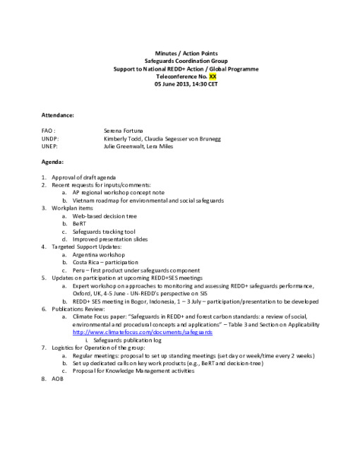 Minutes Safeguards Group Teleconference 2013_06_05 (UNDP) Final