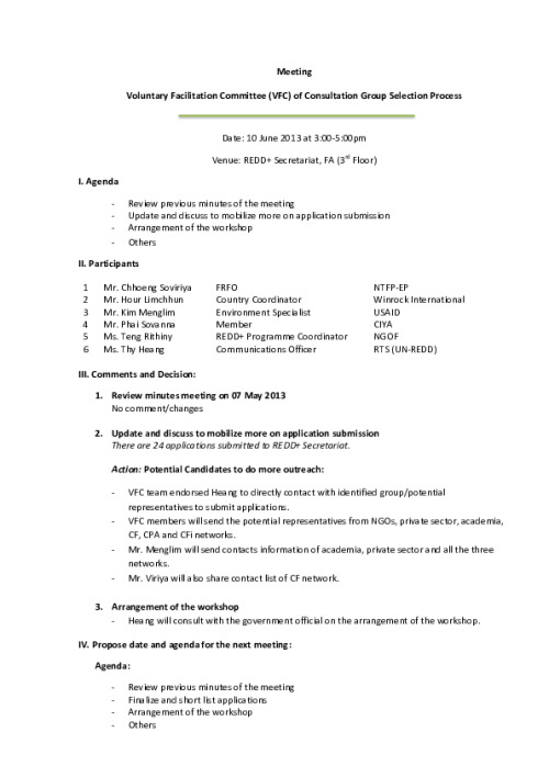 Home Document Library Minutes of VFC Meeting-2013-06-10 N Minutes of VFC Meeting-2013-06-10 n Thu, 08 May, 2014 Download the resource Format: application/pdf Size: (0.355 MB) download Filed under: Category Empty Related publications View all Foundation documents 23 May, 2025UN-REDD Programme Developer 23/05/2025 - Document Download English 21 May, 2025UN-REDD Programme Draft UN-REDD 2026-2030 Strategy Download English 21 May, 2025UN-REDD Programme Draft Monitoring and Evaluation Framework UN-REDD 2026-30 Download English