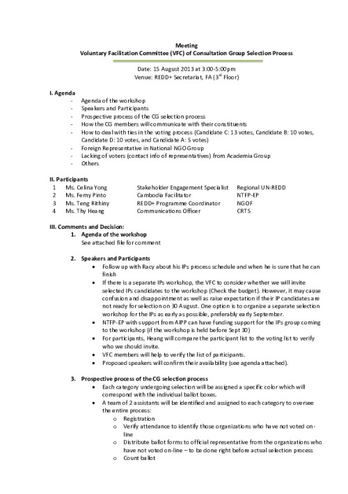 Home Document Library Minutes of VFC Meeting-2013-08-15 Minutes of VFC Meeting-2013-08-15 Thu, 08 May, 2014 Download the resource Format: application/pdf Size: (0.304 MB) download Filed under: Category Empty Related publications View all Foundation documents 23 May, 2025UN-REDD Programme Developer 23/05/2025 - Document Download English 21 May, 2025UN-REDD Programme Draft UN-REDD 2026-2030 Strategy Download English 21 May, 2025UN-REDD Programme Draft Monitoring and Evaluation Framework UN-REDD 2026-30 Download English