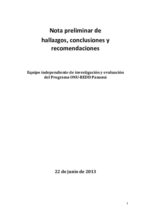 Home Document Library Nota Preliminar Panama Final Junio 2013 Nota preliminar Panama Final junio 2013 Thu, 04 Jul, 2013 Download the resource Format: application/pdf Size: (0.493 MB) download Filed under: Category Empty Related publications View all Foundation documents 23 May, 2025UN-REDD Programme Developer 23/05/2025 - Document Download English 21 May, 2025UN-REDD Programme Draft UN-REDD 2026-2030 Strategy Download English 21 May, 2025UN-REDD Programme Draft Monitoring and Evaluation Framework UN-REDD 2026-30 Download English