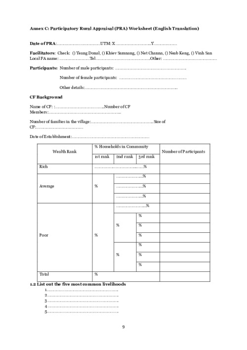 Home Document Library PACT Contract 1 Deliverable 4 PRA Survey Form PACT Contract 1 Deliverable 4 PRA survey form Mon, 02 Jun, 2014 Download the resource Format: application/pdf Size: (0.171 MB) download Filed under: Category Empty Related publications View all Foundation documents 23 May, 2025UN-REDD Programme Developer 23/05/2025 - Document Download English 21 May, 2025UN-REDD Programme Draft UN-REDD 2026-2030 Strategy Download English 21 May, 2025UN-REDD Programme Draft Monitoring and Evaluation Framework UN-REDD 2026-30 Download English