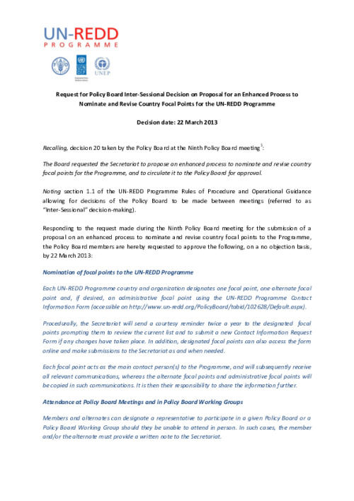 PB intersessional decision request 22 - Enhanced Process to Nominate and Revise Country Focal Points for the UN-REDD Programme