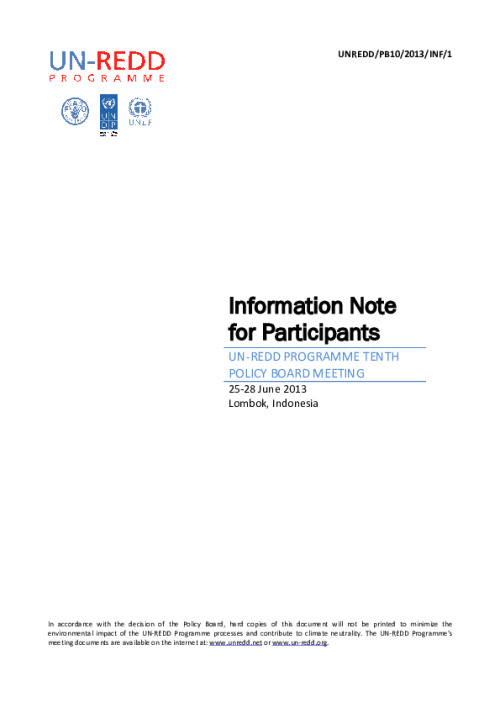 PB 10 Information and Logistics Note (Lombok, Indonesia, 25-27 June 2013)