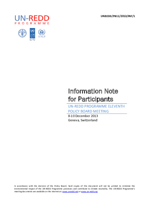 Home Document Library PB11 Information-Logistics Note (ENG) PB11 Information-Logistics Note (ENG) Thu, 14 Nov, 2013 Download the resource Format: application/pdf Size: (0.457 MB) download Filed under: Category Empty Related publications View all Foundation documents 23 May, 2025UN-REDD Programme Developer 23/05/2025 - Document Download English 21 May, 2025UN-REDD Programme Draft UN-REDD 2026-2030 Strategy Download English 21 May, 2025UN-REDD Programme Draft Monitoring and Evaluation Framework UN-REDD 2026-30 Download English