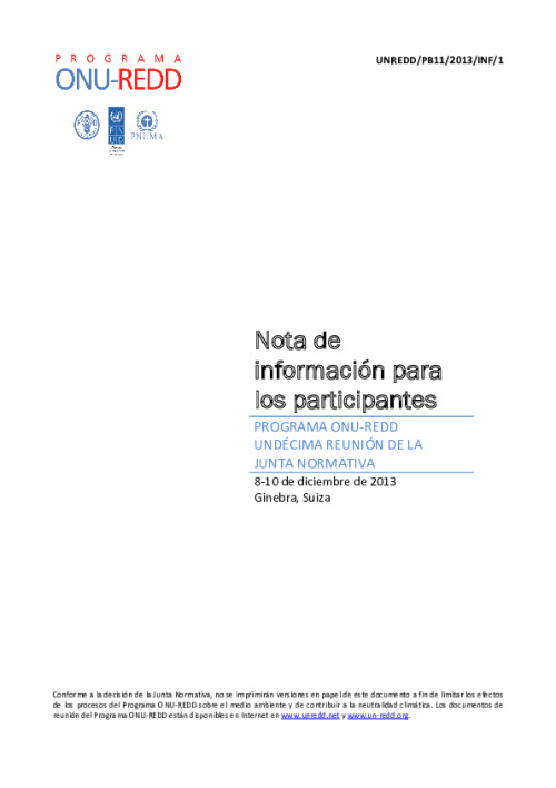 Home Document Library PB11 Information-Logistics Note (SP) PB11 Information-Logistics Note (SP) Thu, 14 Nov, 2013 Download the resource Format: application/pdf Size: (0.395 MB) download Filed under: Category Empty Related publications View all Foundation documents 23 May, 2025UN-REDD Programme Developer 23/05/2025 - Document Download English 21 May, 2025UN-REDD Programme Draft UN-REDD 2026-2030 Strategy Download English 21 May, 2025UN-REDD Programme Draft Monitoring and Evaluation Framework UN-REDD 2026-30 Download English
