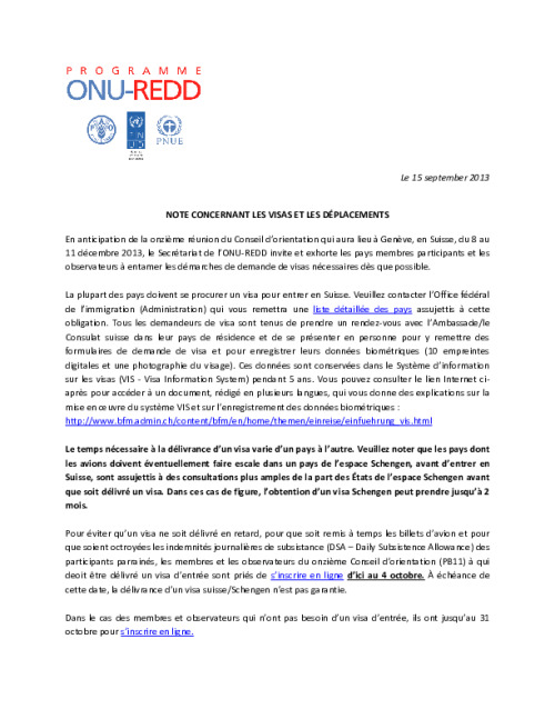 Home Document Library PB11 Visa and Travel Note (Francais - Final) PB11 Visa and Travel Note (Francais - final) Tue, 01 Oct, 2013 Download the resource Format: application/pdf Size: (0.36 MB) download Filed under: Category Empty Related publications View all Foundation documents 23 May, 2025UN-REDD Programme Developer 23/05/2025 - Document Download English 21 May, 2025UN-REDD Programme Draft UN-REDD 2026-2030 Strategy Download English 21 May, 2025UN-REDD Programme Draft Monitoring and Evaluation Framework UN-REDD 2026-30 Download English