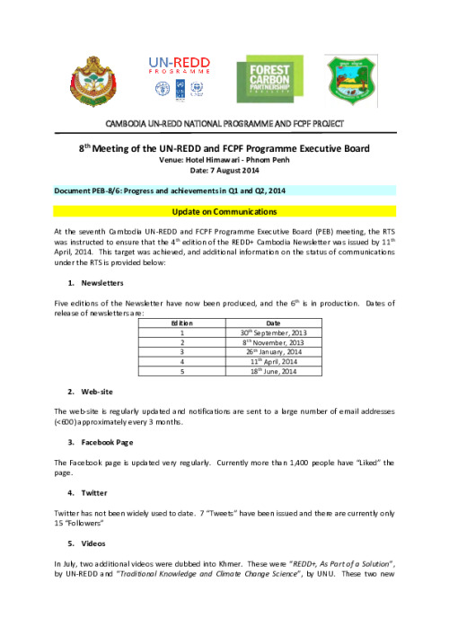 Home Document Library PEB 8-Document 6 Update On Communication PEB 8-Document 6 Update on Communication Tue, 05 Aug, 2014 Download the resource Format: application/pdf Size: (0.489 MB) download Filed under: Category Empty Related publications View all Foundation documents 23 May, 2025UN-REDD Programme Developer 23/05/2025 - Document Download English 21 May, 2025UN-REDD Programme Draft UN-REDD 2026-2030 Strategy Download English 21 May, 2025UN-REDD Programme Draft Monitoring and Evaluation Framework UN-REDD 2026-30 Download English
