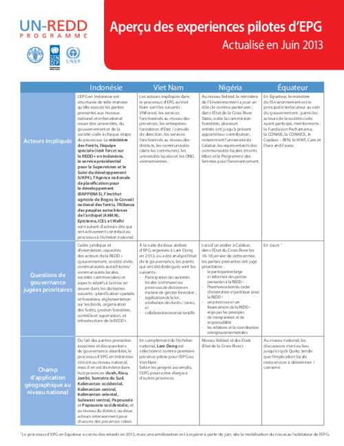 Home Document Library PGA Pilot Overview (French Version) PGA Pilot Overview (French version) Thu, 18 Jul, 2013 Download the resource Format: application/pdf Size: (0.097 MB) download Filed under: Category Empty Related publications View all Foundation documents 23 May, 2025UN-REDD Programme Developer 23/05/2025 - Document Download English 21 May, 2025UN-REDD Programme Draft UN-REDD 2026-2030 Strategy Download English 21 May, 2025UN-REDD Programme Draft Monitoring and Evaluation Framework UN-REDD 2026-30 Download English