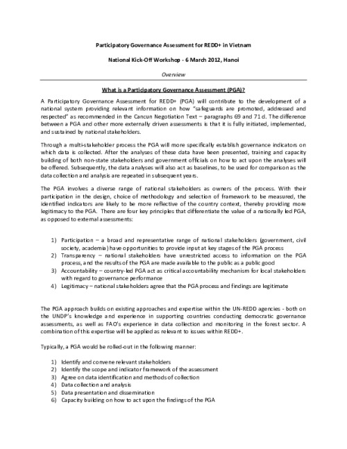 Home Document Library PGA For REDD+ In Viet Nam Overview PGA for REDD+ in Viet Nam overview Tue, 29 Oct, 2013 Download the resource Format: application/pdf Size: (0.08 MB) download Filed under: Category Empty Related publications View all Foundation documents 23 May, 2025UN-REDD Programme Developer 23/05/2025 - Document Download English 21 May, 2025UN-REDD Programme Draft UN-REDD 2026-2030 Strategy Download English 21 May, 2025UN-REDD Programme Draft Monitoring and Evaluation Framework UN-REDD 2026-30 Download English
