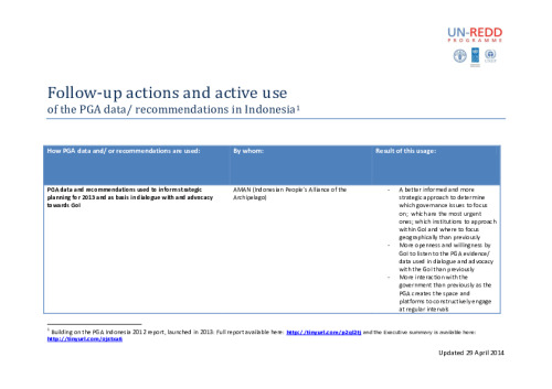 Home Document Library PGA Use and Follow-up PGA use and follow-up Tue, 29 Apr, 2014 Download the resource Format: application/pdf Size: (0.454 MB) download Filed under: Related publications View all Foundation documents 23 May, 2025UN-REDD Programme Developer 23/05/2025 - Document Download English 21 May, 2025UN-REDD Programme Draft UN-REDD 2026-2030 Strategy Download English 21 May, 2025UN-REDD Programme Draft Monitoring and Evaluation Framework UN-REDD 2026-30 Download English