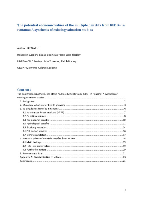 The potential economic values of the multiple benefits from REDD+ in Panama: A synthesis of existing valuation studies