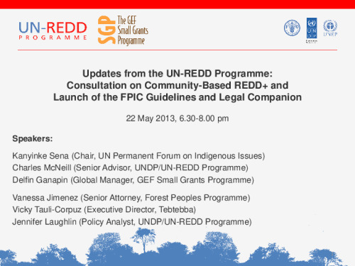 Home Document Library Presentation 1: Community Based REDD+ Presentation 1: Community Based REDD+ Mon, 03 Jun, 2013 Download the resource Format: application/pdf Size: (1.03 MB) download Filed under: Tags UNPFII presentations Category Empty Related publications View all Foundation documents 23 May, 2025UN-REDD Programme Developer 23/05/2025 - Document Download English 21 May, 2025UN-REDD Programme Draft UN-REDD 2026-2030 Strategy Download English 21 May, 2025UN-REDD Programme Draft Monitoring and Evaluation Framework UN-REDD 2026-30 Download English