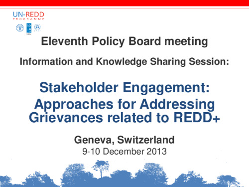 Home Document Library Presentation: Addressing Grievances Related To REDD+_EN Presentation: Addressing Grievances related to REDD+_EN Sun, 08 Dec, 2013 Download the resource Format: application/pdf Size: (2.191 MB) download Filed under: Category Empty Related publications View all Foundation documents 23 May, 2025UN-REDD Programme Developer 23/05/2025 - Document Download English 21 May, 2025UN-REDD Programme Draft UN-REDD 2026-2030 Strategy Download English 21 May, 2025UN-REDD Programme Draft Monitoring and Evaluation Framework UN-REDD 2026-30 Download English