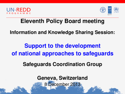 Home Document Library Presentation: Development of National Approaches To Safeguards_EN Presentation: Development of National Approaches to Safeguards_EN Sun, 08 Dec, 2013 Download the resource Format: application/pdf Size: (1.832 MB) download Filed under: Category Empty Related publications View all Foundation documents 23 May, 2025UN-REDD Programme Developer 23/05/2025 - Document Download English 21 May, 2025UN-REDD Programme Draft UN-REDD 2026-2030 Strategy Download English 21 May, 2025UN-REDD Programme Draft Monitoring and Evaluation Framework UN-REDD 2026-30 Download English