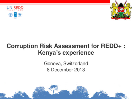 Home Document Library Presentation: Kenya - Corruption Risk Assessment For REDD+_EN Presentation: Kenya - Corruption Risk Assessment for REDD+_EN Sun, 08 Dec, 2013 Download the resource Format: application/pdf Size: (0.868 MB) download Filed under: Category Empty Related publications View all Foundation documents 23 May, 2025UN-REDD Programme Developer 23/05/2025 - Document Download English 21 May, 2025UN-REDD Programme Draft UN-REDD 2026-2030 Strategy Download English 21 May, 2025UN-REDD Programme Draft Monitoring and Evaluation Framework UN-REDD 2026-30 Download English