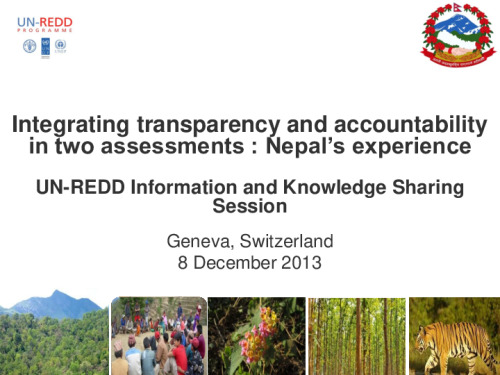 Home Document Library Presentation: Nepal - Integrating Transparency and Accountability_EN Presentation: Nepal - Integrating transparency and accountability_EN Sun, 08 Dec, 2013 Download the resource Format: application/pdf Size: (2.025 MB) download Filed under: Category Empty Related publications View all Foundation documents 23 May, 2025UN-REDD Programme Developer 23/05/2025 - Document Download English 21 May, 2025UN-REDD Programme Draft UN-REDD 2026-2030 Strategy Download English 21 May, 2025UN-REDD Programme Draft Monitoring and Evaluation Framework UN-REDD 2026-30 Download English