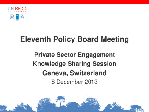Home Document Library Presentation - Private Sector Engagement_EN Presentation - Private Sector Engagement_EN Sun, 08 Dec, 2013 Download the resource Format: application/pdf Size: (0.797 MB) download Filed under: Category Empty Related publications View all Foundation documents 23 May, 2025UN-REDD Programme Developer 23/05/2025 - Document Download English 21 May, 2025UN-REDD Programme Draft UN-REDD 2026-2030 Strategy Download English 21 May, 2025UN-REDD Programme Draft Monitoring and Evaluation Framework UN-REDD 2026-30 Download English
