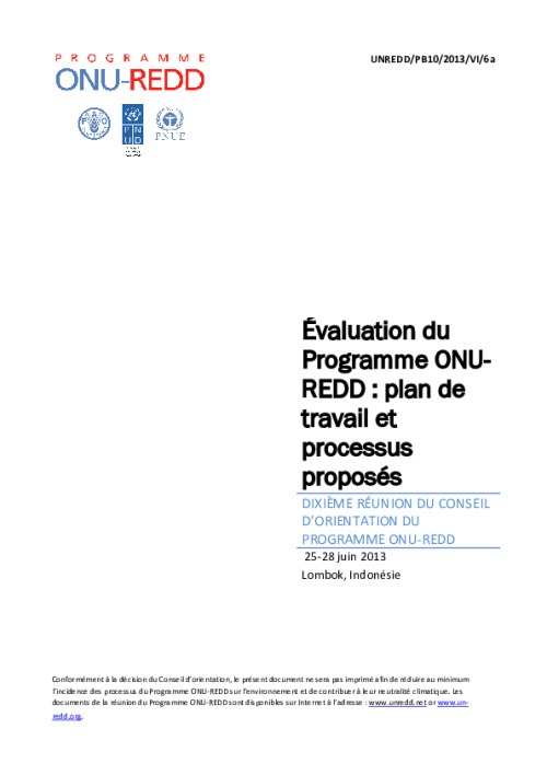 Home Document Library Programme Evaluation Workplan and Process_FR Programme Evaluation Workplan and Process_FR Mon, 10 Jun, 2013 Download the resource Format: application/pdf Size: (0.093 MB) download Filed under: Category Empty Related publications View all Foundation documents 23 May, 2025UN-REDD Programme Developer 23/05/2025 - Document Download English 21 May, 2025UN-REDD Programme Draft UN-REDD 2026-2030 Strategy Download English 21 May, 2025UN-REDD Programme Draft Monitoring and Evaluation Framework UN-REDD 2026-30 Download English