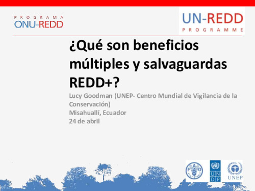 Home Document Library Que Son Beneficios Multiples y Salvaguardas REDD+? Que son beneficios multiples y salvaguardas REDD+? Fri, 17 May, 2013 Download the resource Format: application/pdf Size: (0.95 MB) download Filed under: Tags NFMS MRV ecuador NFI Biodiversity Multiple Benefits Category Empty Related publications View all Foundation documents 23 May, 2025UN-REDD Programme Developer 23/05/2025 - Document Download English 21 May, 2025UN-REDD Programme Draft UN-REDD 2026-2030 Strategy Download English 21 May, 2025UN-REDD Programme Draft Monitoring and Evaluation Framework UN-REDD 2026-30 Download English