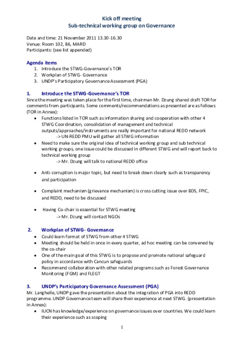 Home Document Library REDD+ Governance-Minutes of The 1st Meeting REDD+ Governance-Minutes of the 1st meeting Tue, 29 Oct, 2013 Download the resource Format: application/pdf Size: (0.433 MB) download Filed under: Category Empty Related publications View all Foundation documents 23 May, 2025UN-REDD Programme Developer 23/05/2025 - Document Download English 21 May, 2025UN-REDD Programme Draft UN-REDD 2026-2030 Strategy Download English 21 May, 2025UN-REDD Programme Draft Monitoring and Evaluation Framework UN-REDD 2026-30 Download English