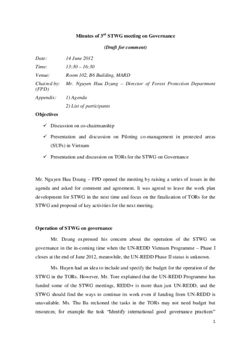 Home Document Library REDD+ Governance-third Meeting of STWG On Governance-Minutes of The Meeting REDD+ Governance-third meeting of STWG on Governance-Minutes of the meeting Tue, 29 Oct, 2013 Download the resource Format: application/pdf Size: (0.238 MB) download Filed under: Category Empty Related publications View all Foundation documents 23 May, 2025UN-REDD Programme Developer 23/05/2025 - Document Download English 21 May, 2025UN-REDD Programme Draft UN-REDD 2026-2030 Strategy Download English 21 May, 2025UN-REDD Programme Draft Monitoring and Evaluation Framework UN-REDD 2026-30 Download English