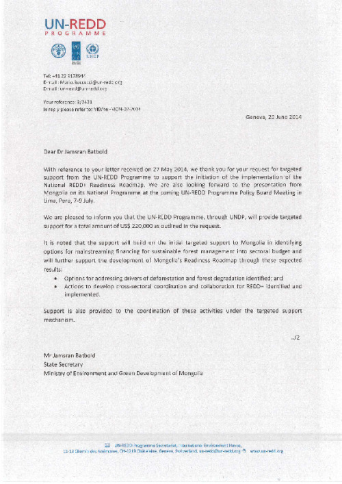 Home Document Library Response To Targeted Support Request From Mongolia Response to Targeted Support request from Mongolia Mon, 23 Jun, 2014 Download the resource Format: application/pdf Size: (0.805 MB) download Filed under: Tags Mongolia Targeted support 2014 Category Empty Related publications View all Foundation documents 23 May, 2025UN-REDD Programme Developer 23/05/2025 - Document Download English 21 May, 2025UN-REDD Programme Draft UN-REDD 2026-2030 Strategy Download English 21 May, 2025UN-REDD Programme Draft Monitoring and Evaluation Framework UN-REDD 2026-30 Download English