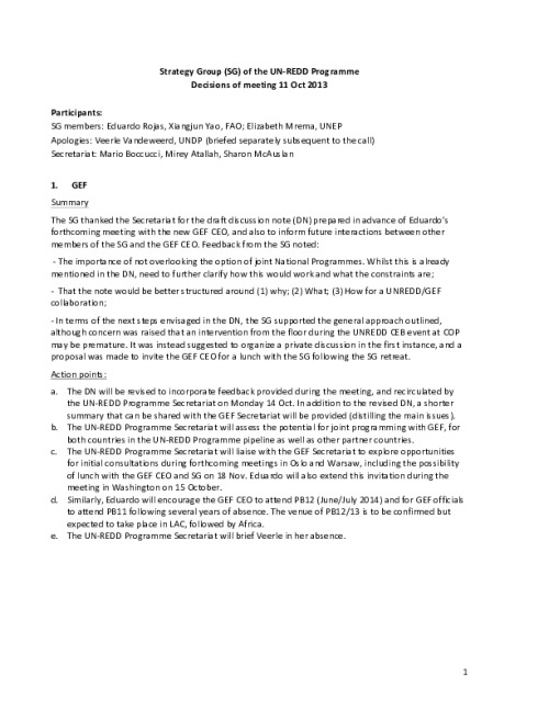 Home Document Library SG Minutes 11 October 2013 SG minutes 11 October 2013 Tue, 11 Nov, 2014 Download the resource Format: application/pdf Size: (0.054 MB) download Filed under: Category Empty Related publications View all Foundation documents 23 May, 2025UN-REDD Programme Developer 23/05/2025 - Document Download English 21 May, 2025UN-REDD Programme Draft UN-REDD 2026-2030 Strategy Download English 21 May, 2025UN-REDD Programme Draft Monitoring and Evaluation Framework UN-REDD 2026-30 Download English