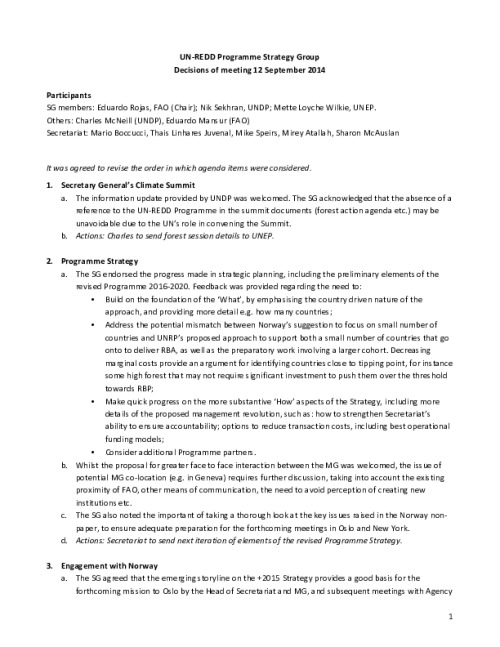 Home Document Library SG Minutes 12 Sept 2014 SG minutes 12 Sept 2014 Tue, 11 Nov, 2014 Download the resource Format: application/pdf Size: (0.085 MB) download Filed under: Category Empty Related publications View all Foundation documents 23 May, 2025UN-REDD Programme Developer 23/05/2025 - Document Download English 21 May, 2025UN-REDD Programme Draft UN-REDD 2026-2030 Strategy Download English 21 May, 2025UN-REDD Programme Draft Monitoring and Evaluation Framework UN-REDD 2026-30 Download English