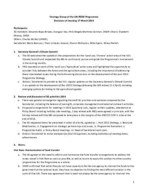 Home Document Library SG Minutes 17 March 2014 SG minutes 17 March 2014 Tue, 11 Nov, 2014 Download the resource Format: application/pdf Size: (0.086 MB) download Filed under: Category Empty Related publications View all Foundation documents 23 May, 2025UN-REDD Programme Developer 23/05/2025 - Document Download English 21 May, 2025UN-REDD Programme Draft UN-REDD 2026-2030 Strategy Download English 21 May, 2025UN-REDD Programme Draft Monitoring and Evaluation Framework UN-REDD 2026-30 Download English