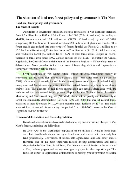 Home Document Library The Situation of Land Use, Forest Policy and Governance In Viet Nam The situation of land use, forest policy and governance in Viet Nam Tue, 29 Oct, 2013 Download the resource Format: application/pdf Size: (0.099 MB) download Filed under: Category Empty Related publications View all Foundation documents 23 May, 2025UN-REDD Programme Developer 23/05/2025 - Document Download English 21 May, 2025UN-REDD Programme Draft UN-REDD 2026-2030 Strategy Download English 21 May, 2025UN-REDD Programme Draft Monitoring and Evaluation Framework UN-REDD 2026-30 Download English
