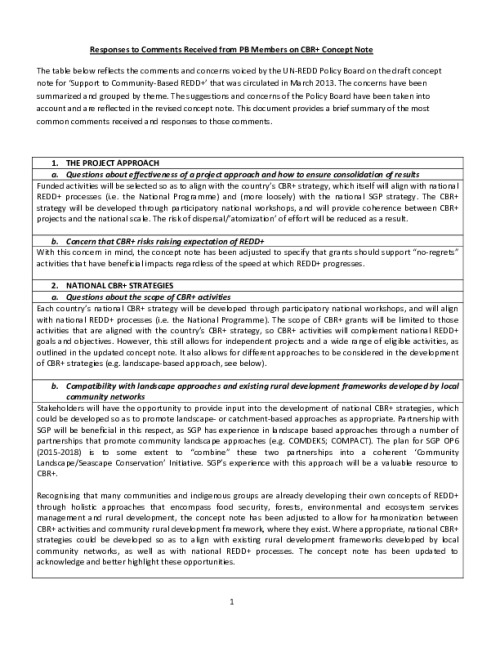 Home Document Library Summary of PB Feedback On CBR+ With Responses_Jun08 Summary of PB feedback on CBR+ with responses_Jun08 Tue, 25 Jun, 2013 Download the resource Format: application/pdf Size: (0.085 MB) download Filed under: Category Empty Related publications View all Foundation documents 23 May, 2025UN-REDD Programme Developer 23/05/2025 - Document Download English 21 May, 2025UN-REDD Programme Draft UN-REDD 2026-2030 Strategy Download English 21 May, 2025UN-REDD Programme Draft Monitoring and Evaluation Framework UN-REDD 2026-30 Download English