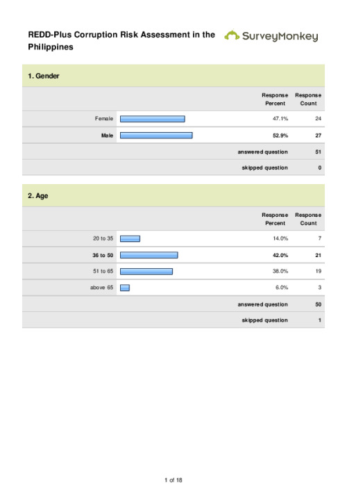 Home Document Library SurveySummary SurveySummary Thu, 28 Feb, 2013 Download the resource Format: application/pdf Size: (0.257 MB) download Filed under: Tags anti corruption Philippines Targeted support online survey survey Category Empty Related publications View all Foundation documents 23 May, 2025UN-REDD Programme Developer 23/05/2025 - Document Download English 21 May, 2025UN-REDD Programme Draft UN-REDD 2026-2030 Strategy Download English 21 May, 2025UN-REDD Programme Draft Monitoring and Evaluation Framework UN-REDD 2026-30 Download English
