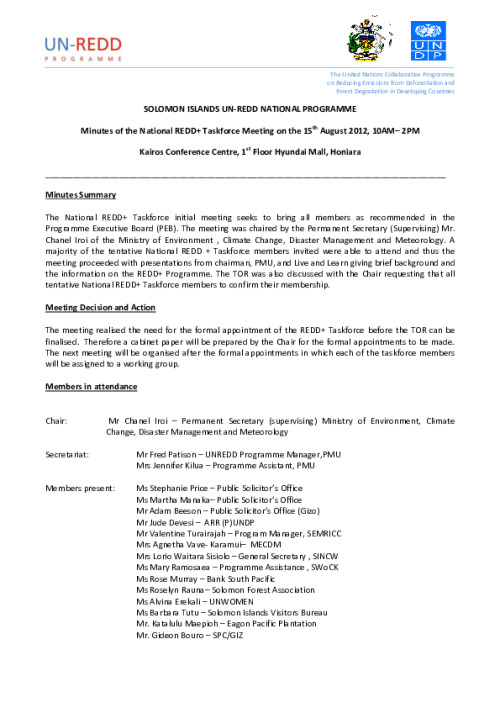 Home Document Library Taskforce Meeting Minutes_15_8_12 Taskforce Meeting Minutes_15_8_12 Mon, 25 Feb, 2013 Download the resource Format: application/pdf Size: (0.443 MB) download Filed under: Category Empty Related publications View all Foundation documents 23 May, 2025UN-REDD Programme Developer 23/05/2025 - Document Download English 21 May, 2025UN-REDD Programme Draft UN-REDD 2026-2030 Strategy Download English 21 May, 2025UN-REDD Programme Draft Monitoring and Evaluation Framework UN-REDD 2026-30 Download English