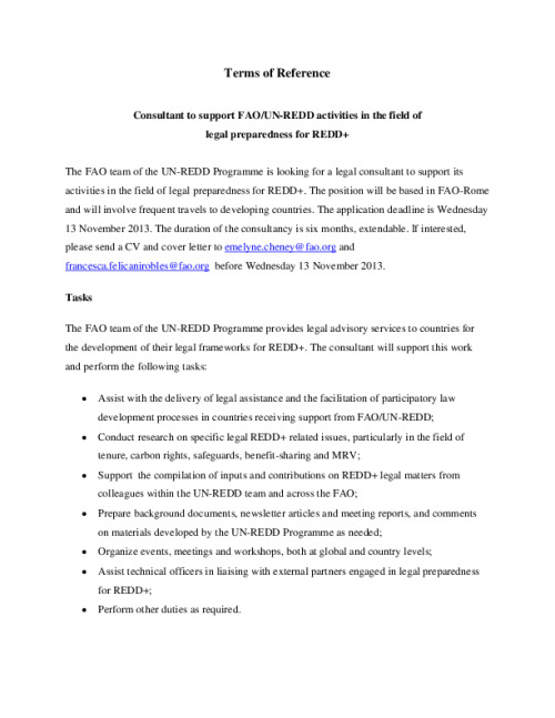 Home Document Library TOR FAO UN-REDD Legal Preparedness Consultant TOR FAO UN-REDD Legal Preparedness Consultant Thu, 31 Oct, 2013 Download the resource Format: application/pdf Size: (0.024 MB) download Filed under: Category Empty Related publications View all Foundation documents 23 May, 2025UN-REDD Programme Developer 23/05/2025 - Document Download English 21 May, 2025UN-REDD Programme Draft UN-REDD 2026-2030 Strategy Download English 21 May, 2025UN-REDD Programme Draft Monitoring and Evaluation Framework UN-REDD 2026-30 Download English