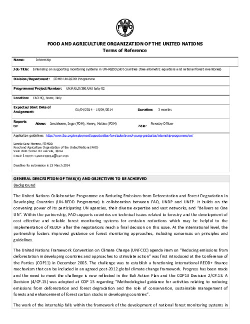 Home Document Library TORs-internship_AE_NFI2 TORs-internship_AE_NFI2 Thu, 13 Mar, 2014 Download the resource Format: application/pdf Size: (0.327 MB) download Filed under: Category Empty Related publications View all Foundation documents 23 May, 2025UN-REDD Programme Developer 23/05/2025 - Document Download English 21 May, 2025UN-REDD Programme Draft UN-REDD 2026-2030 Strategy Download English 21 May, 2025UN-REDD Programme Draft Monitoring and Evaluation Framework UN-REDD 2026-30 Download English