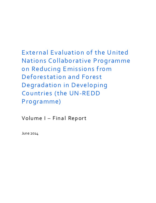 Home Document Library UN-REDD Evaluation Final Report Volume1 June2014 EN UN-REDD Evaluation Final Report Volume1 June2014 EN Thu, 19 Jun, 2014 Download the resource Format: application/pdf Size: (1.341 MB) download Filed under: Category Empty Related publications View all Foundation documents 23 May, 2025UN-REDD Programme Developer 23/05/2025 - Document Download English 21 May, 2025UN-REDD Programme Draft UN-REDD 2026-2030 Strategy Download English 21 May, 2025UN-REDD Programme Draft Monitoring and Evaluation Framework UN-REDD 2026-30 Download English