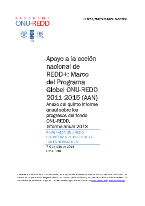 Home Document Library UN-REDD PB12 - SNA_Annual Progress Report 2013_ANNEX13_ES UN-REDD PB12 - SNA_Annual Progress Report 2013_ANNEX13_ES Thu, 13 Nov, 2014 Download the resource Format: application/pdf Size: (1.425 MB) download Filed under: Category Empty Related publications View all Foundation documents 23 May, 2025UN-REDD Programme Developer 23/05/2025 - Document Download English 21 May, 2025UN-REDD Programme Draft UN-REDD 2026-2030 Strategy Download English 21 May, 2025UN-REDD Programme Draft Monitoring and Evaluation Framework UN-REDD 2026-30 Download English