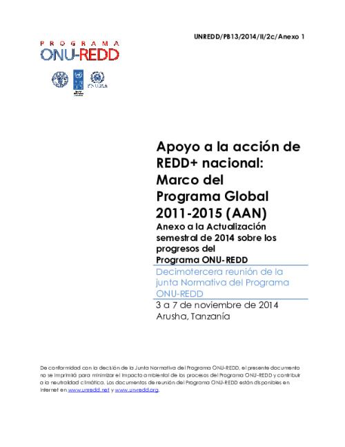 Home Document Library UN-REDD PB13 - Anexo 1. ANN-Actualización Semestral 2014 del Programa ONU-REDD-Spanish UN-REDD PB13 - Anexo 1. ANN-Actualización semestral 2014 del Programa ONU-REDD-Spanish Thu, 13 Nov, 2014 Download the resource Format: application/pdf Size: (0.965 MB) download Filed under: Category Empty Related publications View all Foundation documents 23 May, 2025UN-REDD Programme Developer 23/05/2025 - Document Download English 21 May, 2025UN-REDD Programme Draft UN-REDD 2026-2030 Strategy Download English 21 May, 2025UN-REDD Programme Draft Monitoring and Evaluation Framework UN-REDD 2026-30 Download English
